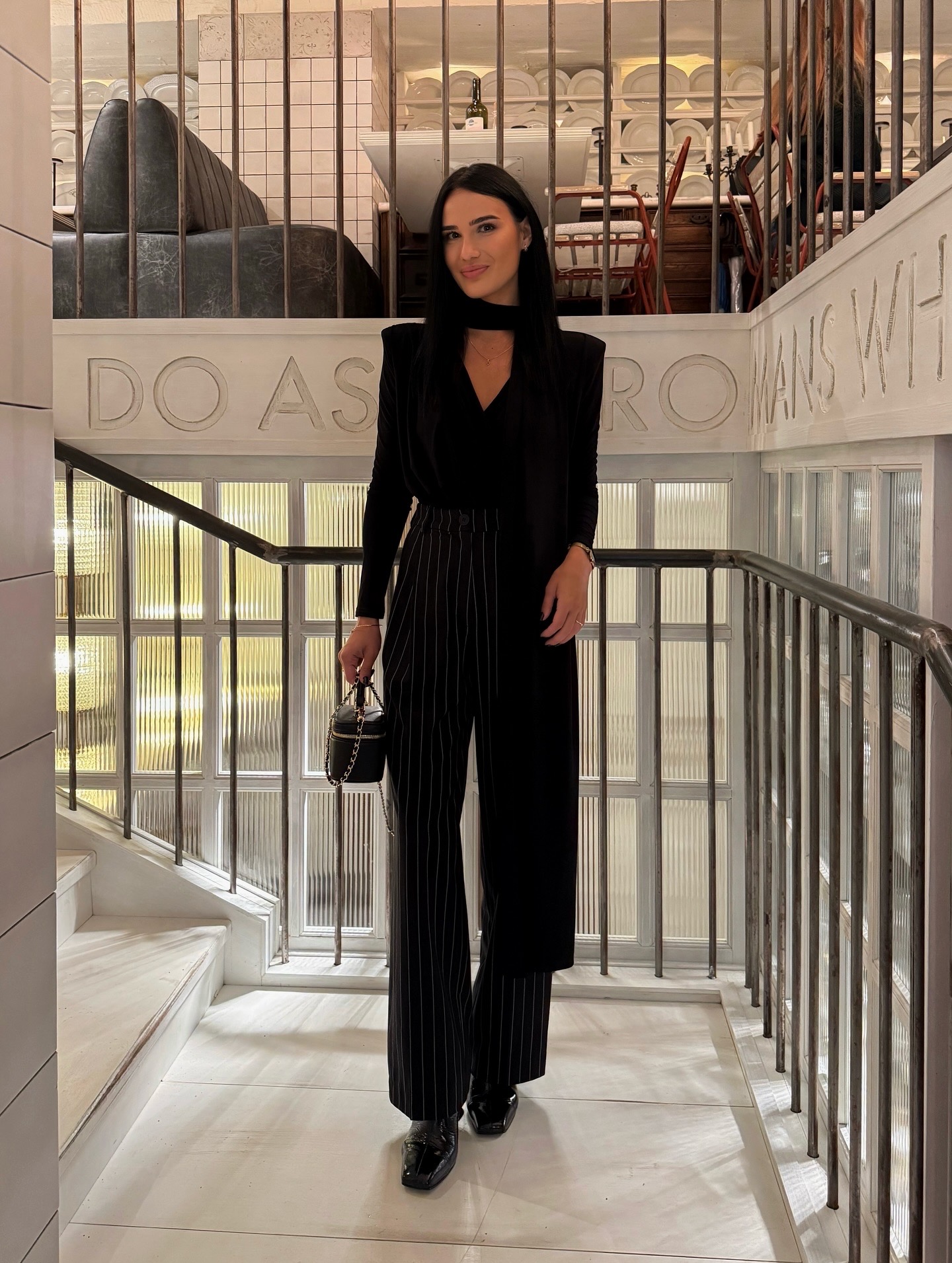Боді зі шлейфом — ефектна й сучасна річ, що поєднує лаконічний силует із драматичним акцентом у вигляді довгого шлейфу. Ідеально підходить для вечірніх виходів чи особливих подій, створюючи враження сукні, але з комфортом і свободою рухів. Добре поєднується з брюками-палаццо, спідницею чи навіть джинсами для сміливого контрасту.