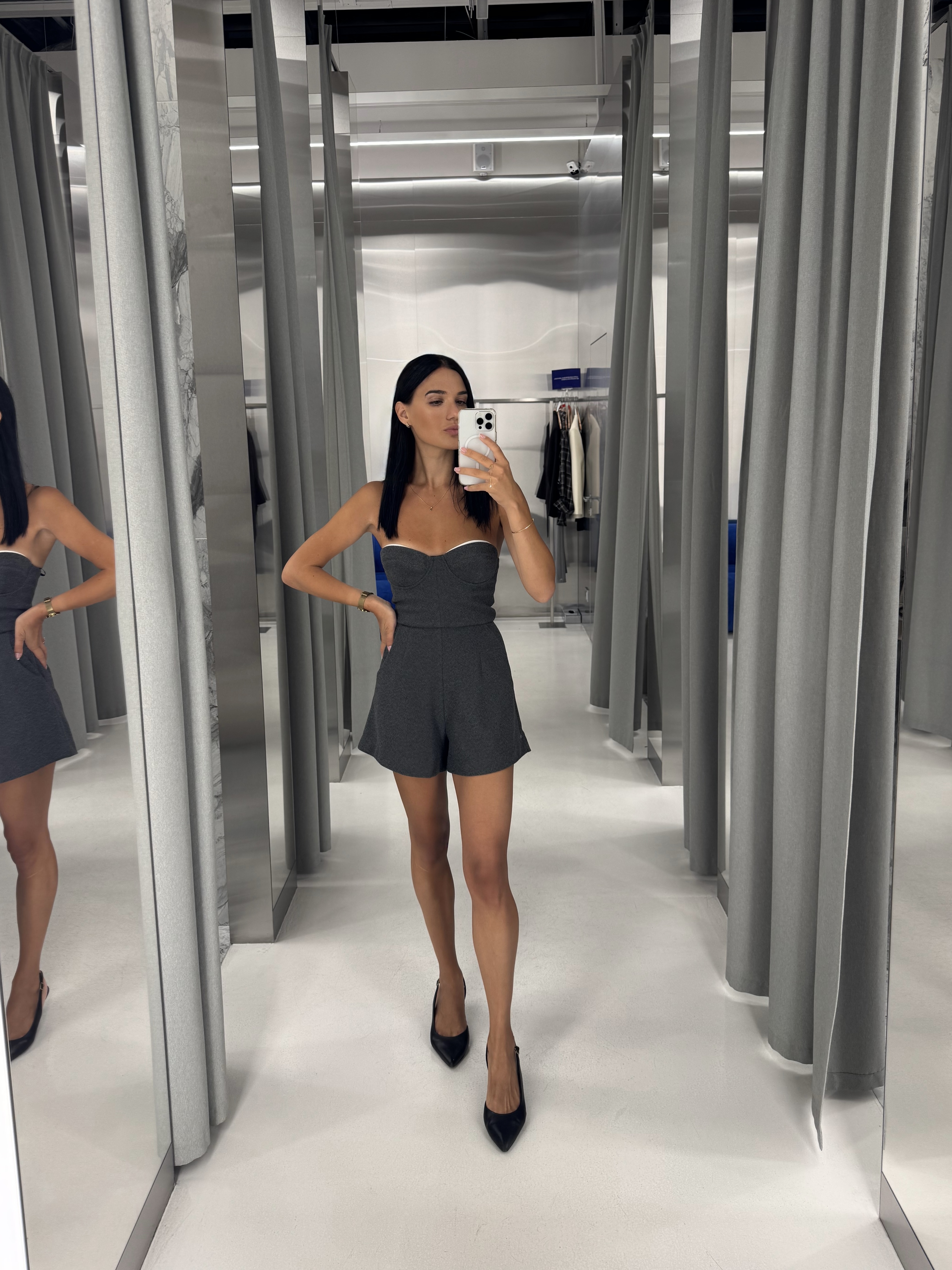 Комбінезон з контрастними вставками по ліфу - вигідно підкреслюють лінію фігури, створюючи динамічний та стильний силует. Продуманий крій забезпечує комфорт у русі, а виразний дизайн робить цю модель ідеальною як для щоденного носіння, так і для особливих випадків.