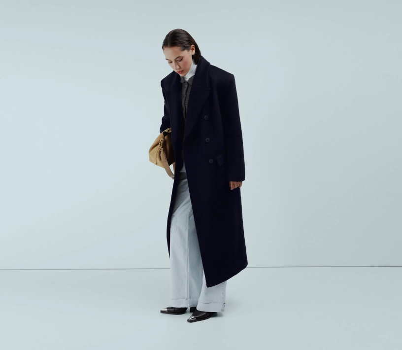 Пальто довге з подвійними клапанами, синє — стильна класика для прохолодної пори. Модель вирізняється елегантним кроєм, глибоким синім кольором і практичними подвійними клапанами, що додають образу вишуканості та функціональності. Ідеальний вибір для міського стилю та ділових образів.