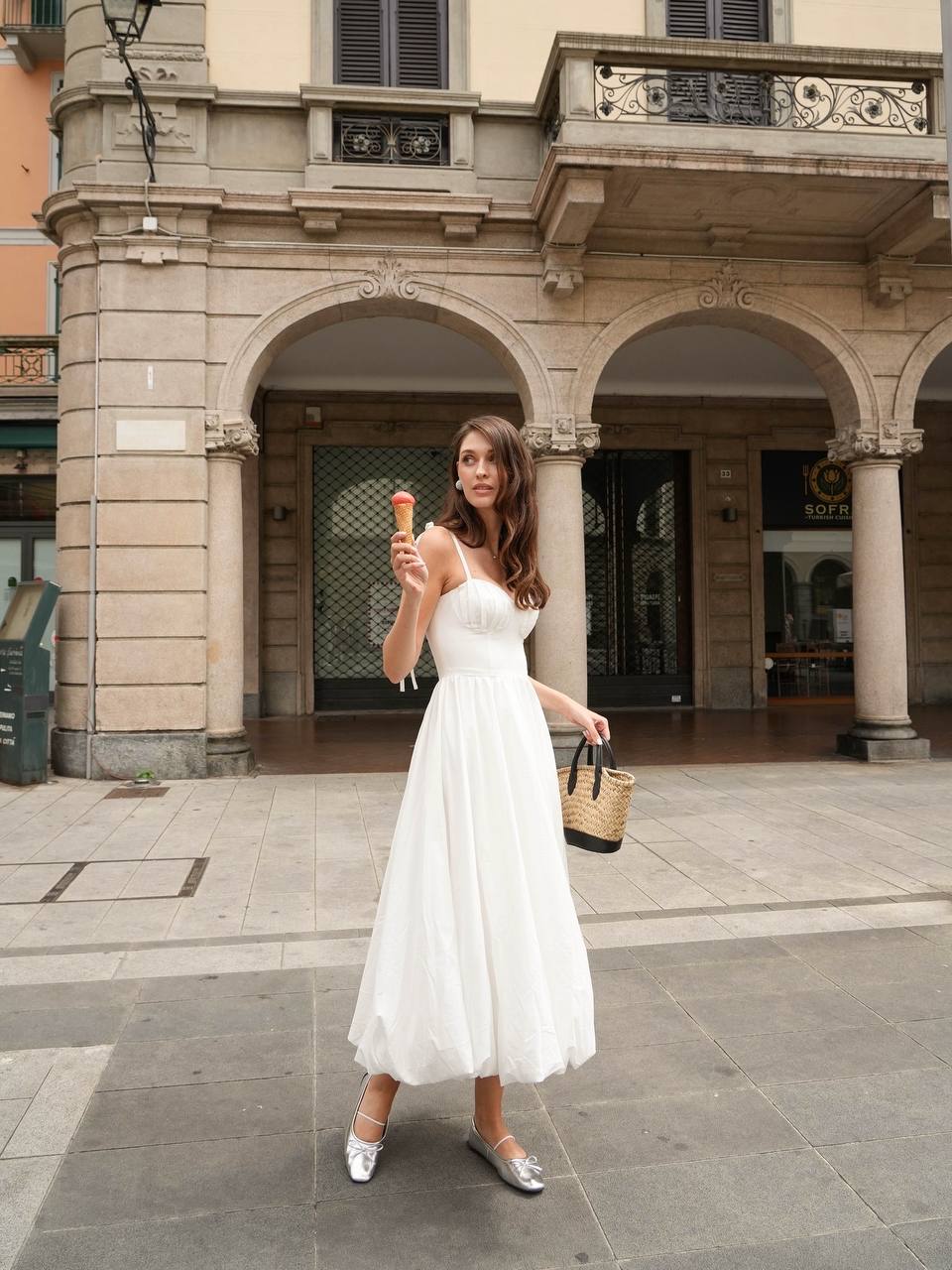 Сукня-балон молочного кольору — це стильний та елегантний вибір для будь-якого сезону. Така модель вирізняється об’ємним фасоном, який нагадує форму балона, створюючи жіночний силует. Молочний відтінок додає образу ніжності та витонченості.