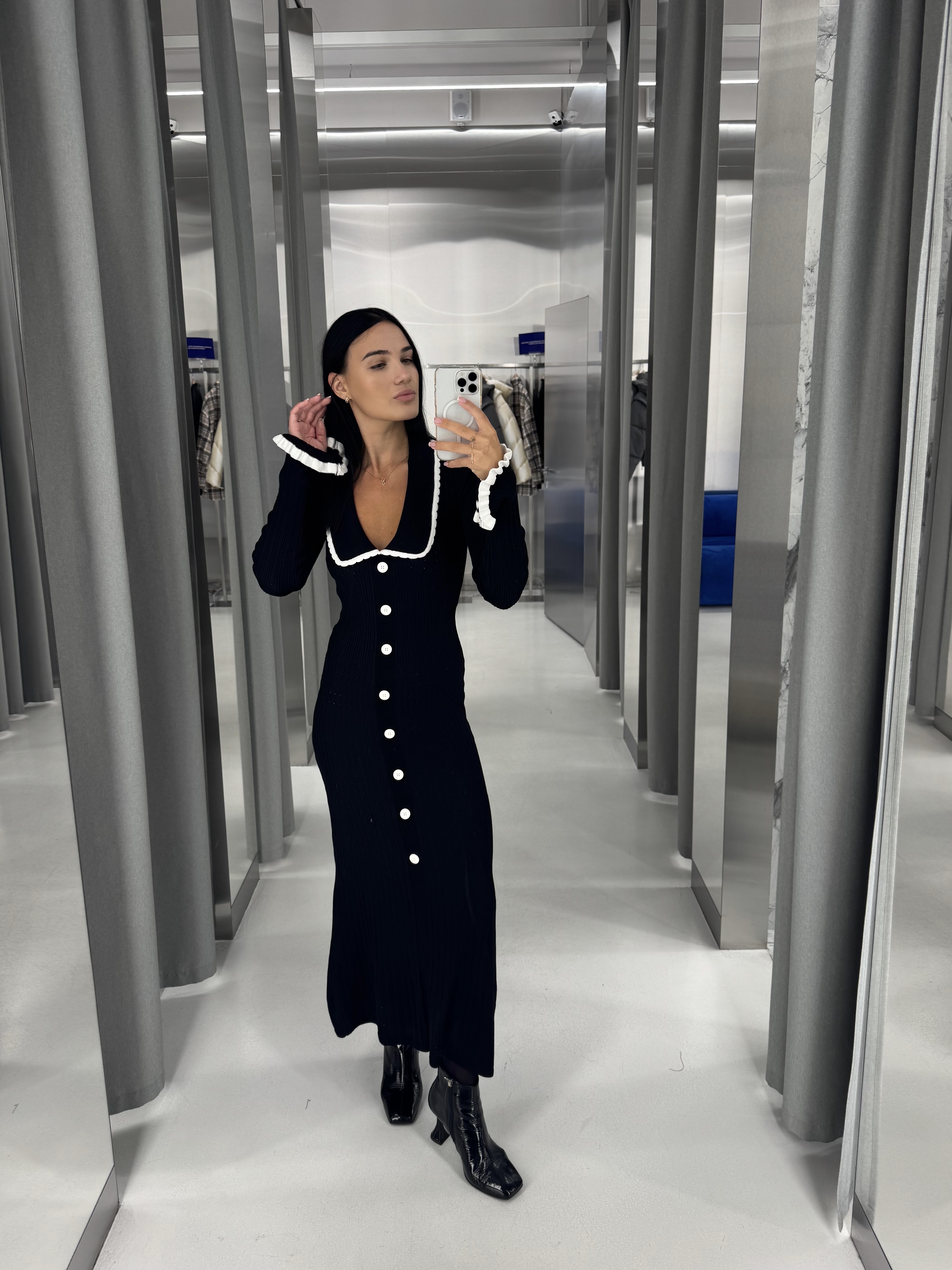 Сукня міді в'язана з ґудзиками, чорна — стильна та зручна модель для щоденного образу. М'який трикотаж приємно прилягає до тіла, ґудзики додають акценту та зручності. Ідеальний вибір для осені та зими.