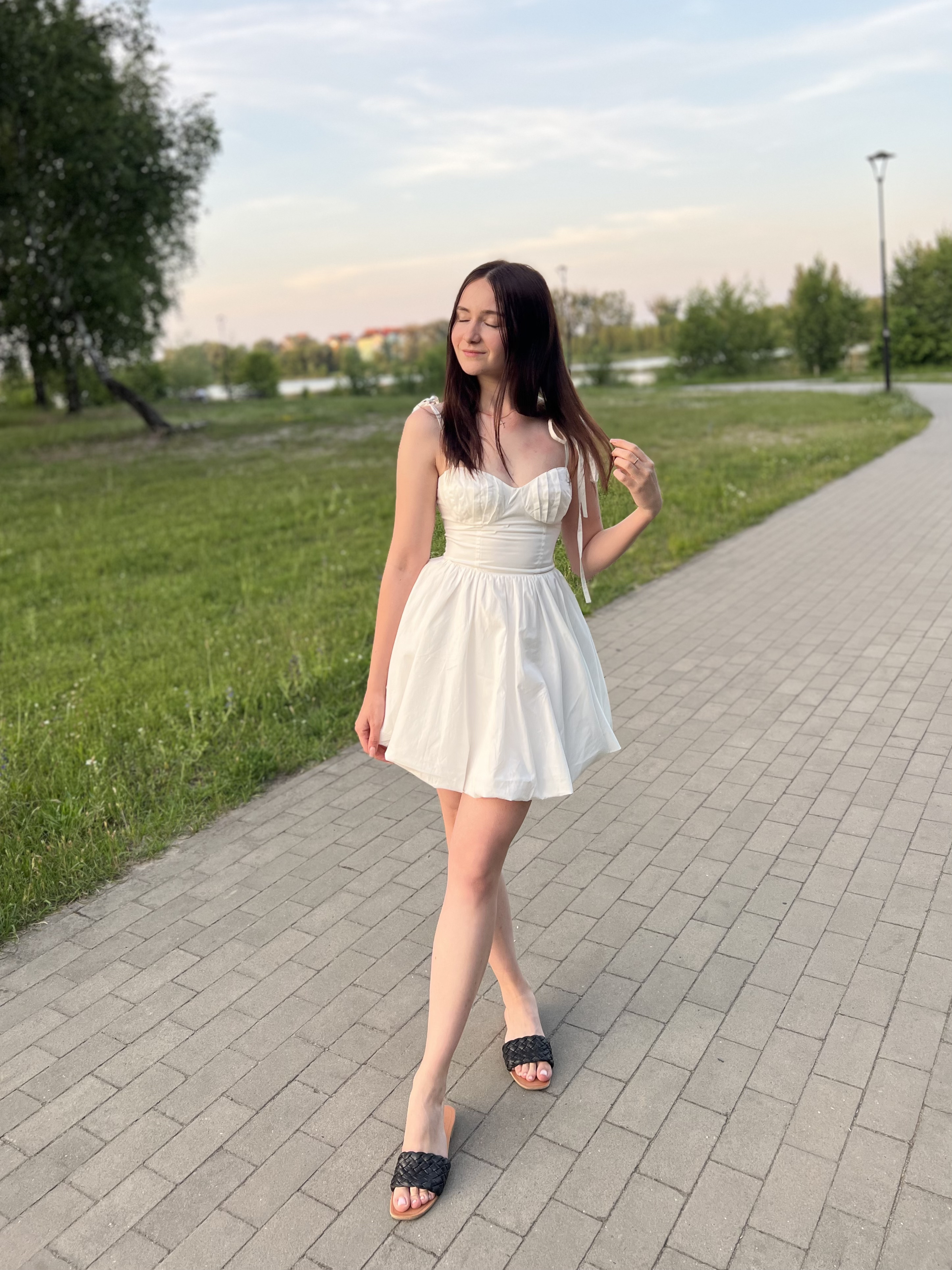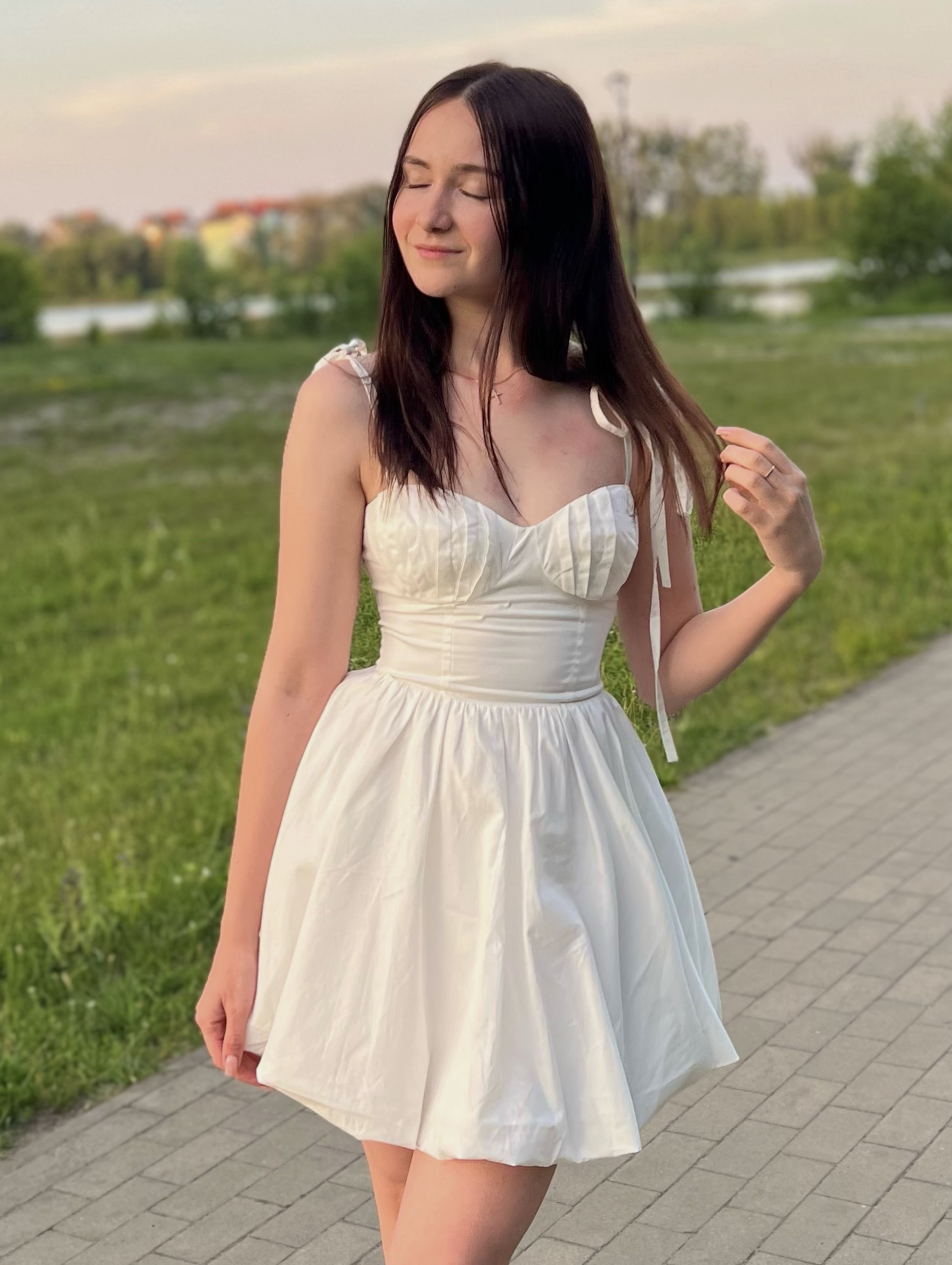 Міні сукня балон — сміливий акцент у гардеробі. Завдяки округлому обʼєму в нижній частині вона виглядає легко, свіжо та нестандартно. Силует мʼяко віддаляється від тіла, створюючи невимушену, але продуману форму. Така модель підходить як для особливих виходів, так і для стильних щоденних образів — усе залежить від взуття та настрою.